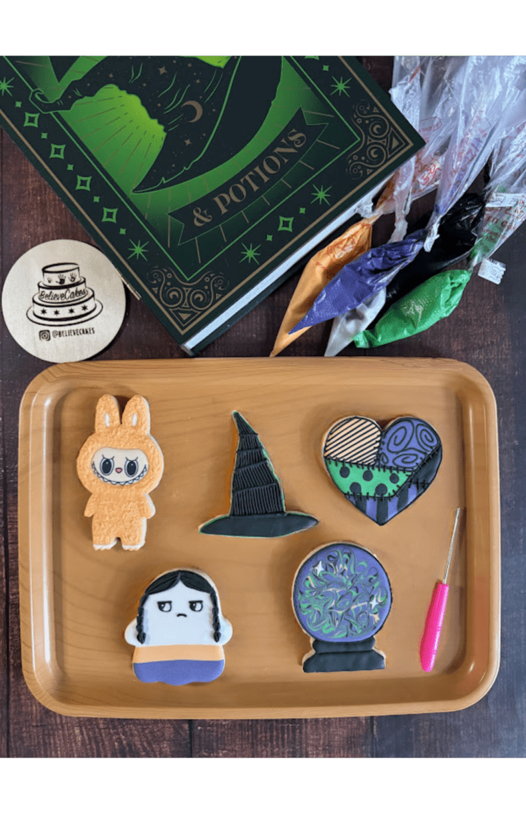 Step into spooky season with this hands-on Halloween cookie decorating class in Chicago! In this creative and beginner-friendly workshop, you’ll learn how to decorate a one-of-a-kind mashup cookie set featuring spooky twists on iconic characters and themes: